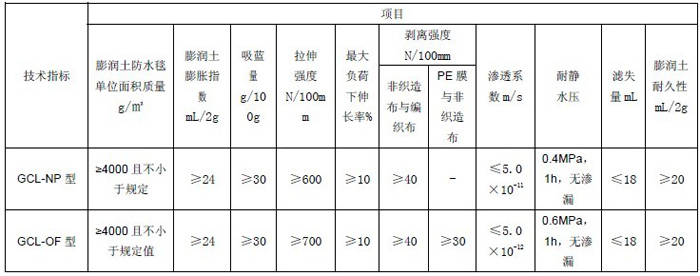 本廠生產的鈉基膨潤土防水毯按結構不同分為GCL-NP型和GCL-OF型,由客戶根據工程的需要選擇使用。